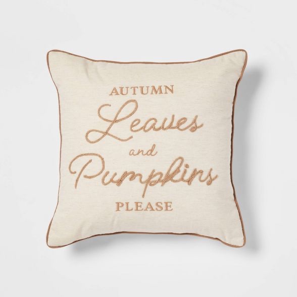 The embroidered square throw pillow comes in a neutral cream giving a subtle touch of Fall to any space.
