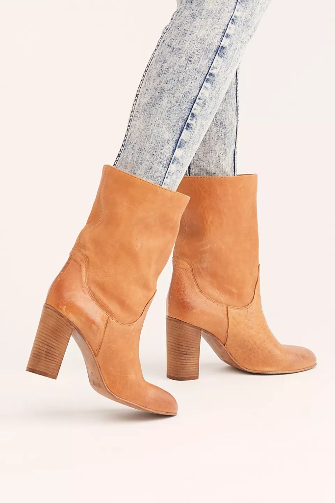 The slouchy ankle boots are perfectly distressed with a great high-stacked heel. The leather is soft making it a comfortable fit for Fall! The boots come in 5 great colors with the brown leather shown to the left.