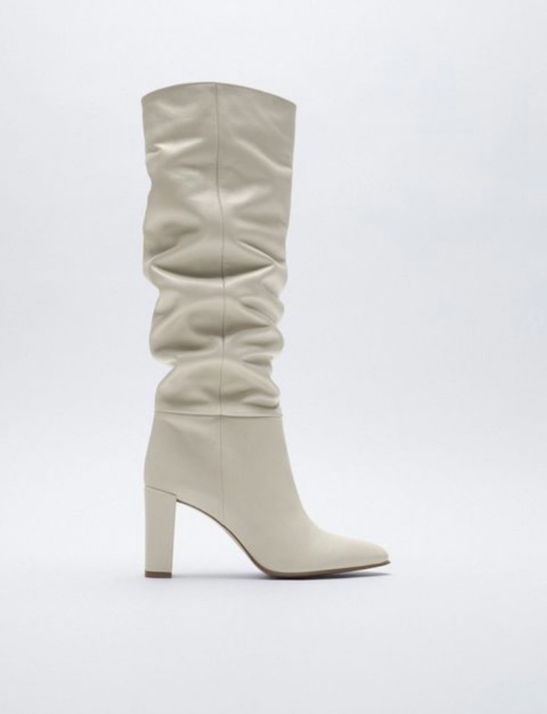These tall, slouchy boots are made of 100% leather and come in a beautiful off white color. In case you haven’t noticed, off white is definitely the color to own this Fall. I love the 3 inch heel and slouchy style!