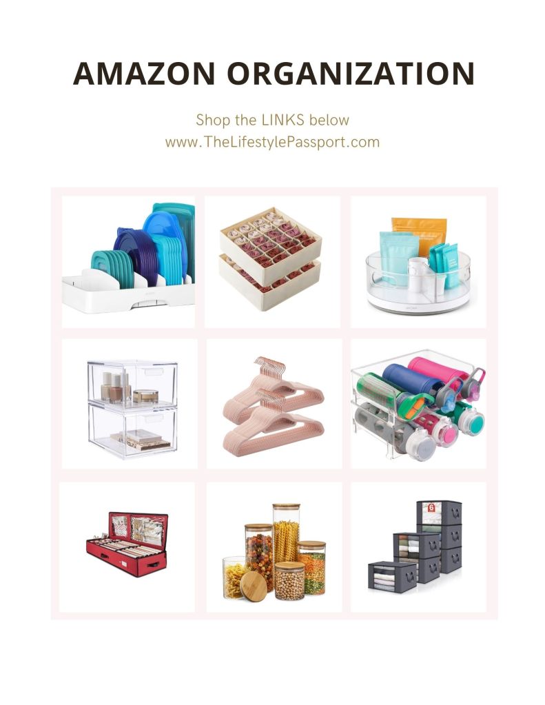 (1) Lid Organizer (2) Drawer Organizer (3) Snack Organizer (4) Organizer Drawers (5) Velvet Hangers (6) Water Bottle Holder (7) Gift Wrap Organizer (8) Kitchen Canisters (9) Foldable Storage Bags