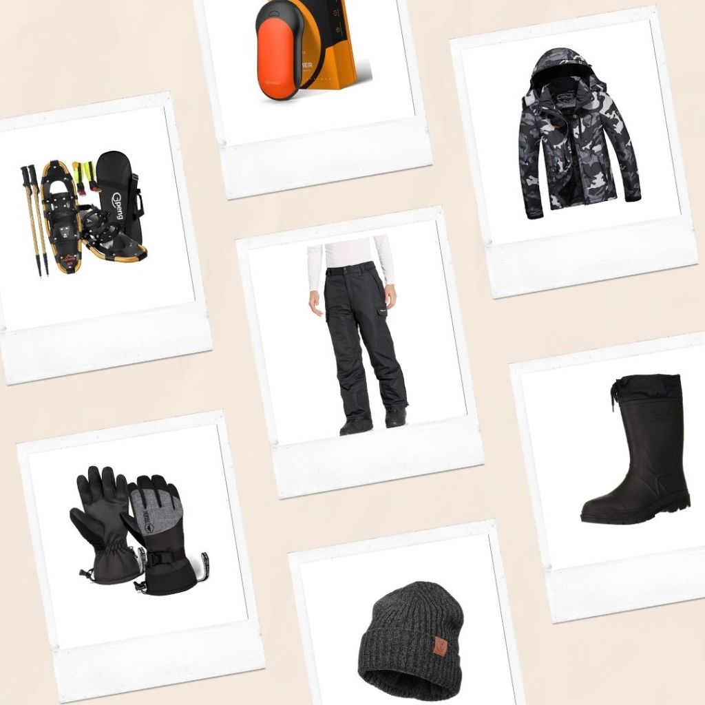(1) 4-in-1 Terrain Snowshoes (2) Men’s Waterproof Snow Glove (3) Rechargeable Hand Warmer (4) Men’s Snow Cargo Pant (5) Men’s Polar Fleece Beanie (6) Men’s Waterproof Ski Jacket (7) Men’s Cold-Weather Boot