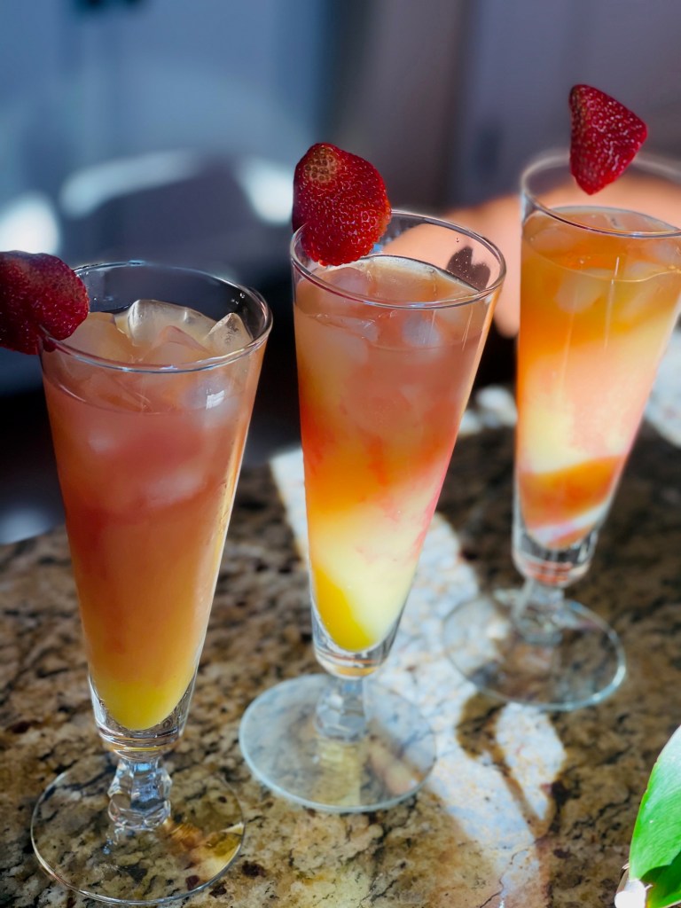 About the Cocktail: Fill a small pitcher with ice. Pour orange juice, sparkling wine, and peach schnapps over ice; stir well. Garnish with strawberry. Enjoy!