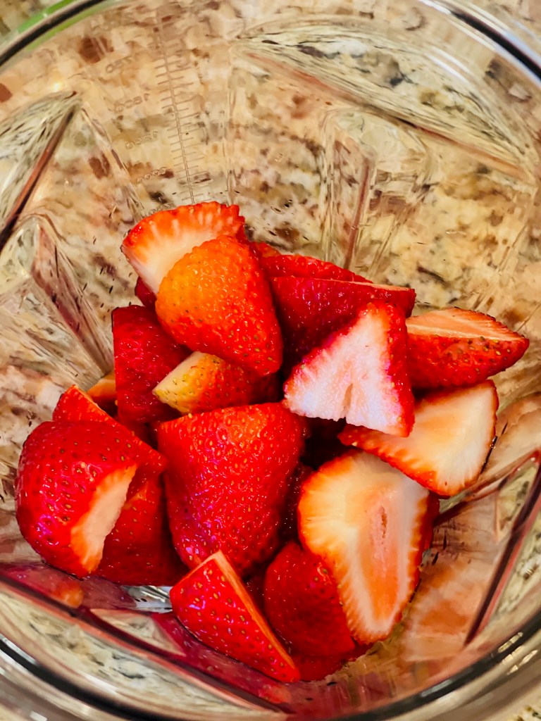Step 3: Cut remaining strawberries into halves and place them in blender.