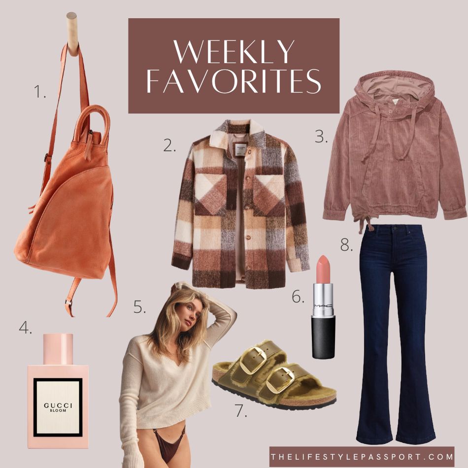 This week’s favorites are inspired by my current surroundings – the mountains! As I sit here surrounded by the cool, crisp mountain air, I found myself exploring all things cozy. The Stellar Cashmere Pullover by Free People and the Cozy Shirt Jacket by Abercrombie & Fitch are the kind of cozy vibes I’m into this season! Not to mention, this season’s Birkenstock Shearling Sandal – the BEST!