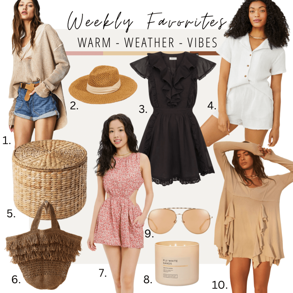 This week’s Weekly Favorites are giving off just the right amount of warm weather vibes. The Twisted Brand Straw Hat and Bubble Gauze Short and Top Set are already packed and ready to go for my Spring Break trip to Costa Rica. I am also very much in love with the Floral Cut-Out Romper from American Eagle. It comes in several colors and patterns and won’t break the bank!